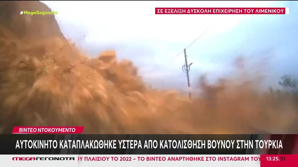 Βίντεο ντοκουμέντο: Αυτοκίνητο καταπλακώθηκε ύστερα από κατολίσθηση Βουνού στην Τουρκία