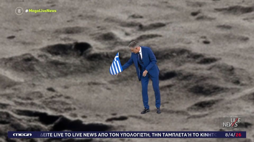 Ο Νίκος Ευαγγελάτος καρφώνει την ελληνική σημαία στη Σελήνη