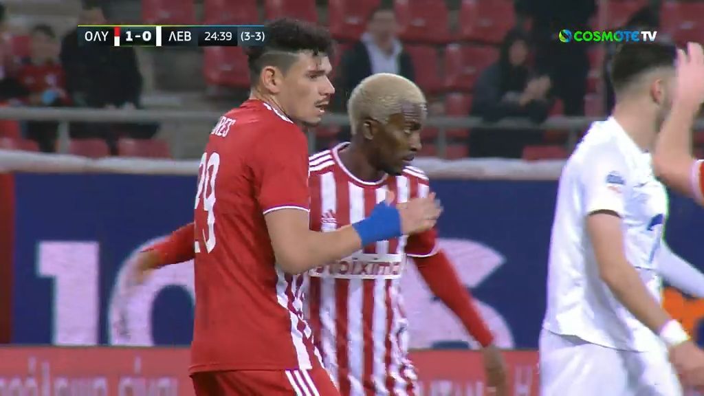 ΟΛΥΜΠΙΑΚΟΣ – ΛΕΒΑΔΕΙΑΚΟΣ: Ο Σοάρες με κεφαλιά μετά την σέντρα του Βαλμπουενά
