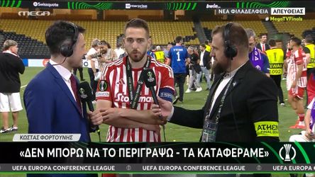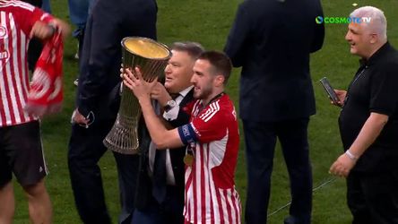 VideosΟλυμπιακός Τελικός Conference League: Ελ Καμπί και Φορτούνης πήγαν με την κούπα στον μικρό Γιαννάκη
