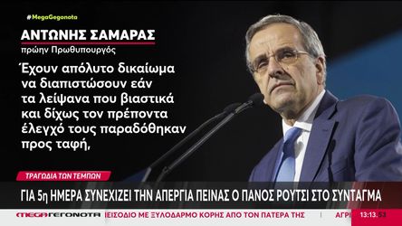 VideosΕκτός Γηπέδων Τέμπη: Συνεχίζει την απεργία πείνας ο Πάνος Ρούτσι στο Σύνταγμα – Η παρέμβαση του Αντώνη Σαμαρά