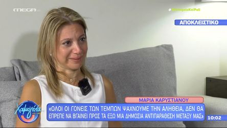 VideosΕκτός Γηπέδων Μ. Καρυστιανού: «Δεν μπορώ να διαχειριστώ την απώλεια της Μάρθης - Νομιζω θα ανοίξω τη ντουλάπα της και θα φύγει το άρωμα της»