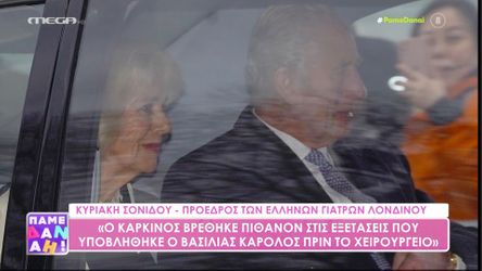 VideosΕκτός Γηπέδων Κ. Σονίδου: «Ο καρκίνος βρέθηκε πιθανόν στις εξετάσεις που υποβλήθηκε ο Κάρολος πριν το χειρουργείο»