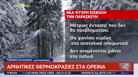 VideosΕκτός Γηπέδων Επιμένει το κρύο μέχρι την Κυριακή - Αρνητικές θερμοκρασίες στα ορεινά - Από τον Διόνυσο και πάνω τα χιόνια στην Αττική