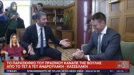 VideosΕκτός Γηπέδων Στιχομυθία Κασσελάκη - Ανδρουλάκη : «Πιο άνετος αυτός ο καναπές» - «Ναι γιατί είναι πράσινος»