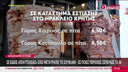 VideosΕκτός Γηπέδων Ακρίβεια: Είδος πολυτελείας το σουβλάκι – «Αγγίζει» ακόμη και τα 6,50 ευρώ στην Κρήτη