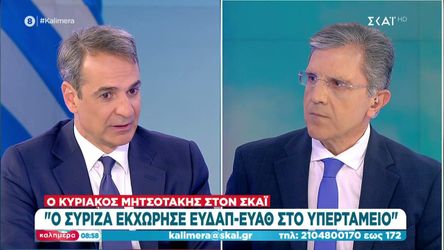 VideosΕκτός Γηπέδων Μητσοτάκης στον ΣΚΑΪ: ΕΥΔΑΠ και ΕΥΑΘ επιστρέφουν στο Δημόσιο - Το νερό θα παραμείνει δημόσιο αγαθό