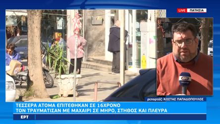 VideosΕκτός Γηπέδων Επίθεση σε 16χρονο στα Πατήσια: 4 άτομα τον μαχαίρωσαν σε στήθος, μηρό και πλάτη – Νοσηλεύεται στο Παίδων