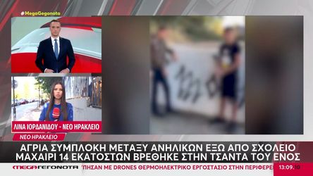 VideosΕκτός Γηπέδων Νέο Ηράκλειο: Άγρια συμπλοκή μεταξύ ανηλίκων έξω από σχολείο - Μαχαίρι 14 εκατοστών βρέθηκε στην ταράτσα του ενός