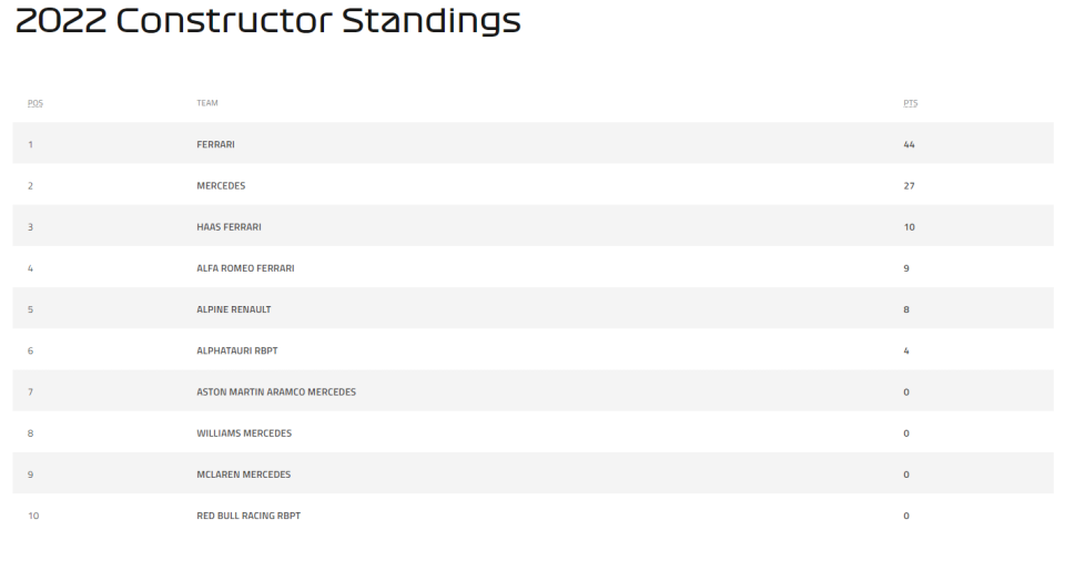 Η βαθμολογία των ομάδων μετά το πρώτο GP: