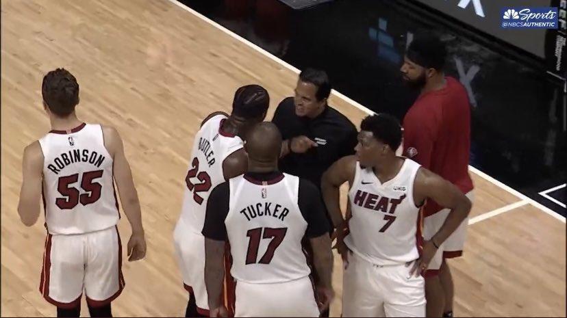 Σα να έφυγε από το γήπεδο στο τέλος η ομάδα του Ερικ Σπόελστρα, παρ’ ότι οι Νεοϋορκέζοι έπαιζαν δίχως τον καλύτερο παίκτη τους, Τζούλιους Ραντλ. Το Γκόλντεν Στέιτ δεν είχε και τους τρεις κορυφαίους παίκτες του, η Φιλαδέλφεια τους δύο σούπερ σταρ της! Κόντρα στους «πολεμιστές» τσακώθηκαν σε τάιμ άουτ και ο Τζίμι Μπάτλερ με τον Γιουντόνις Χάσλεμ, ο πρώτος έβγαλε από τα ρούχα του και τον Σπόελστρα… Στους τέσσερις τελευταίους αγώνες το Μαϊάμι προηγούνταν στο ξεκίνημα των τέταρτων περιόδων, εντούτοις σε αυτές το συνολικό σκορ είναι 84-137 για τους αντιπάλους του. Καθίζηση… Επονται δύο ακόμα εντός έδρας αναμετρήσεις με Νετς και Κινγκς, πριν τη μίνι ανατολική -και απαιτητική- τουρνέ σε Βοστώνη, Σικάγο και Τορόντο.