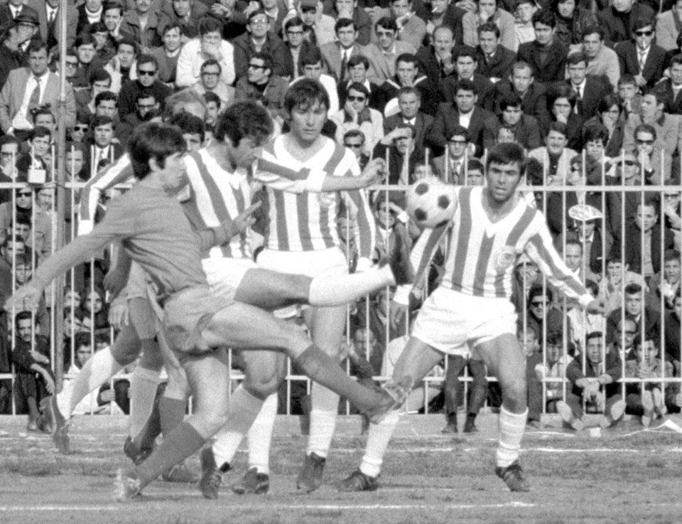 Ο 17χρονος Θωμάς Μαύρος με τη φανέλα του Πανιωνίου σε παιχνίδι με τον Ολυμπιακό για το πρωτάθλημα της Α’ Εθνικής του 1971