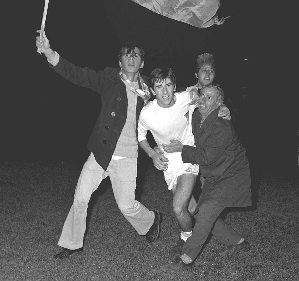 O Θωμάς Μαύρος πανηγυρίζει τον θρίαμβο επί της Ατλέτικο Μαδρίτης τον Οκτώβριο του 1971