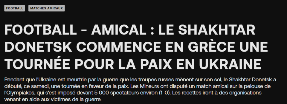 O Shakhar Donetsk voltou a campo hoje, em amistoso contra o Olympiacos. As receitas do jogo serão doadas para ajuda humanitária aos afetados pela guerra. Houve ainda uma homenagem com nomes de cidades devastadas pelo conflito nas camisas dos jogadores. ?? #Shakhtar #Ucrania pic.twitter.com/p9NKVUOeYi