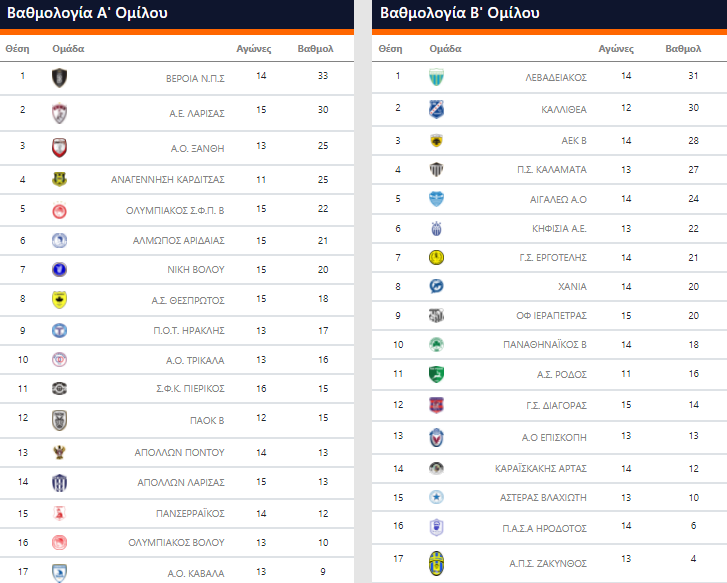 Στο Βόρειο όμιλο ο ΠΑΟΚ Β’ υποδέχεται τον Απόλλωνα Λάρισας, ο Ολυμπιακός Βόλου τον Ολυμπιακό Β’ και η Νίκη Βόλου τον Πανσερραϊκό. Στο Νότιο όμιλο, ο Παναθηναϊκός Β’ υποδέχεται την Επισκοπή και ο Εργοτέλης τον Λεβαδειακό.